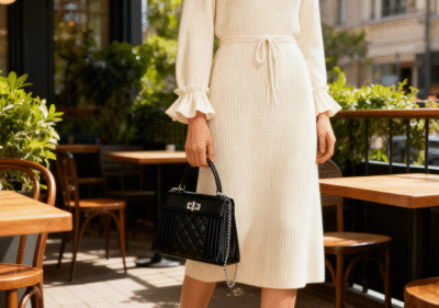 “Knitted Dress & Luxury Bag: Effortless Chic for Brunch Days”