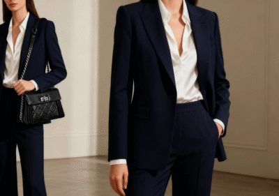 Power Dressing: Navy Suit & Luxury Bag for Boss Lady Vibes