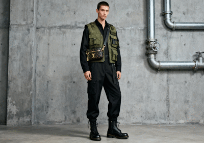 Utility Vest & Luxury Bag: Masculine Edge with High-Fashion Flair